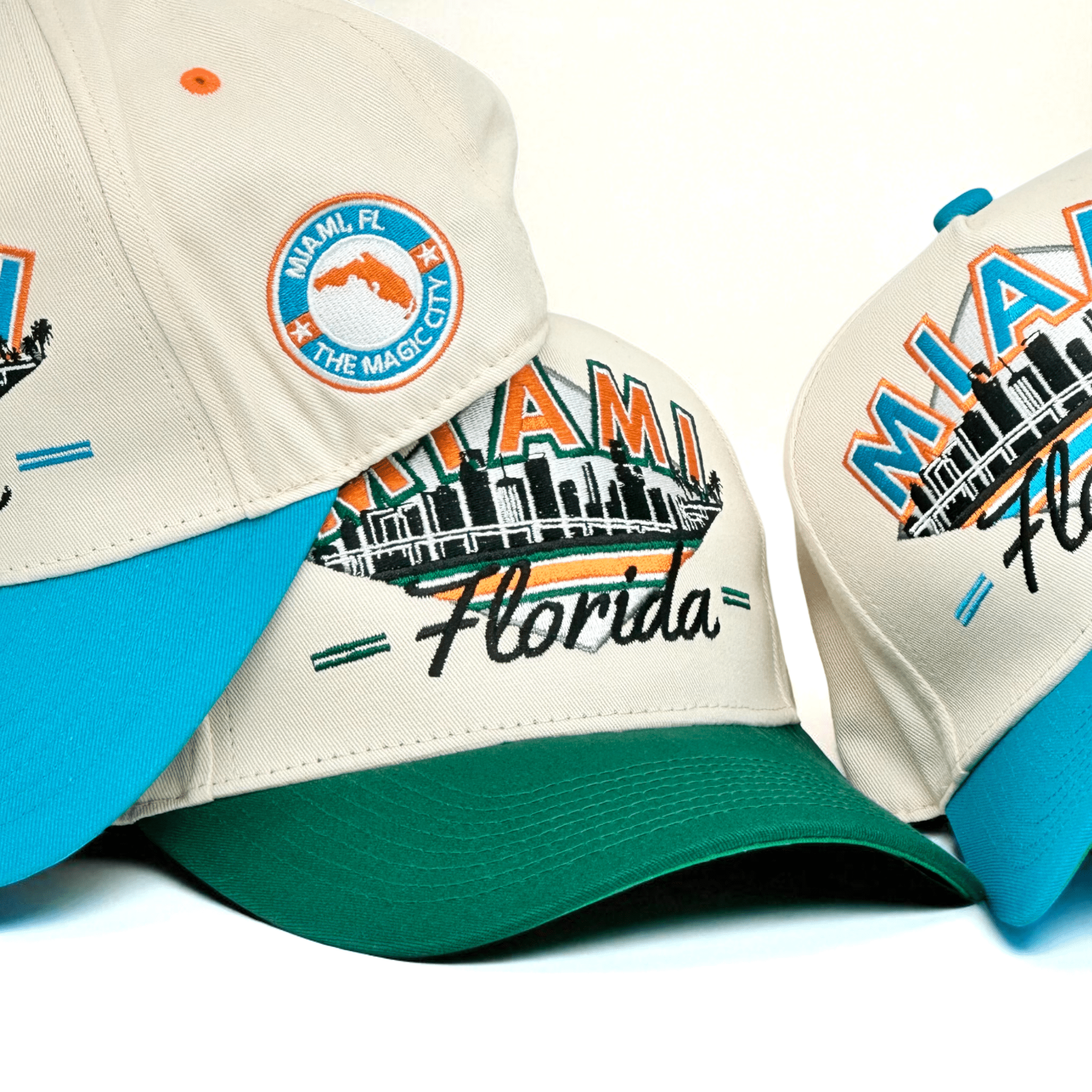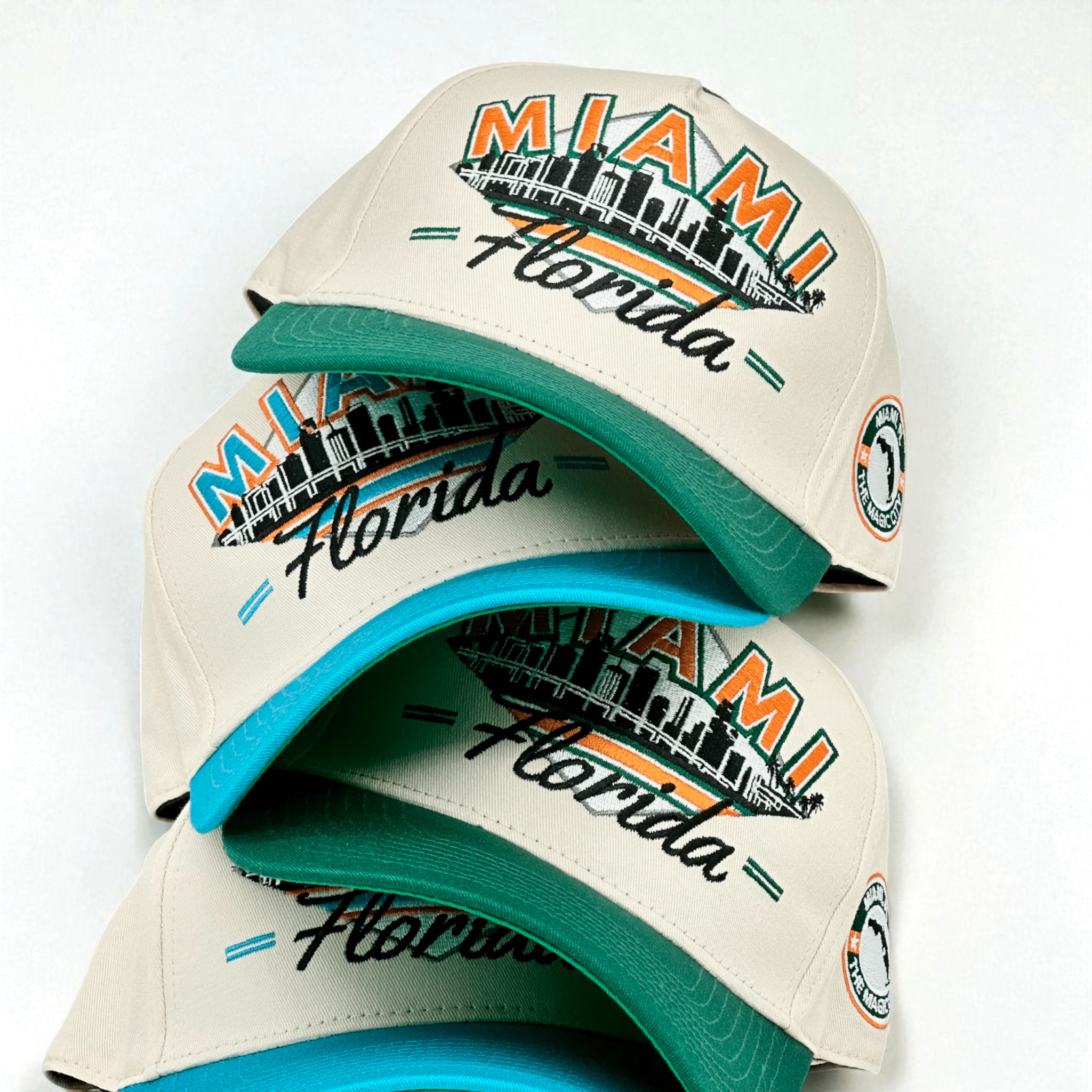 Downtown Miami meets Hurricane tradition, orange and green defining that championship swagger. That classic city mark rides the side.
